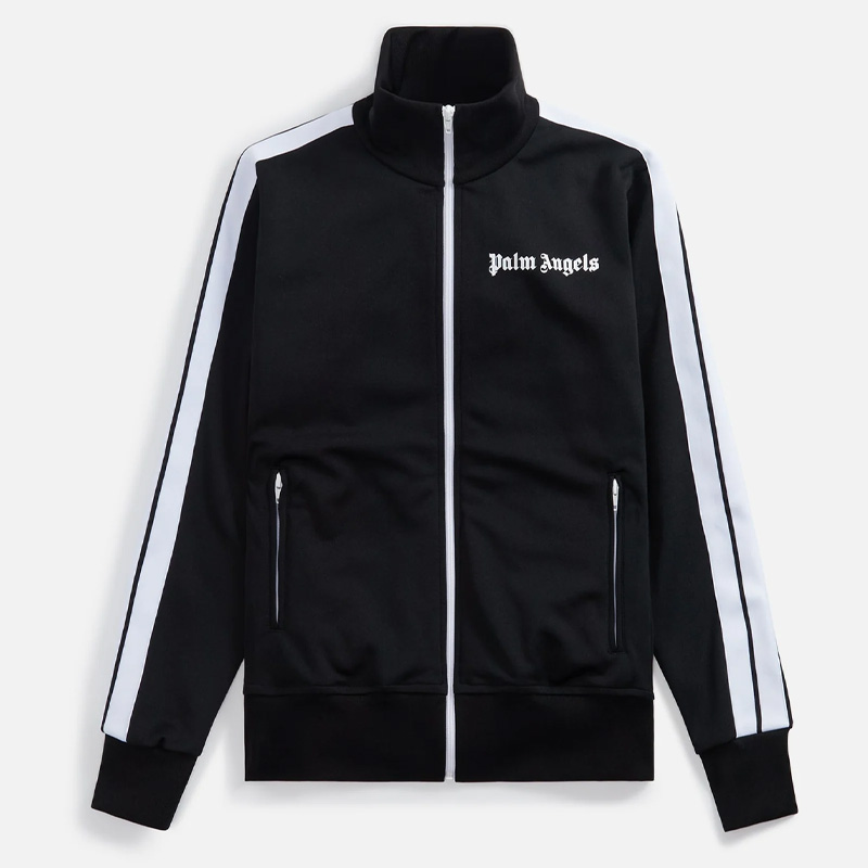 El sello característico de Palm Angels incluye varios ítems que se han vuelto ya icónicos en el circuito de la moda urbana de lujo. Por un lado están sus chándales de inspiración vintage, compuestos por chaquetas con cremallera y pantalones deportivos a juego, usualmente adornados con bandas laterales y el logotipo de la marca en el pecho o la espalda. Estos conjuntos –disponibles en vivos colores o en clásico negro con líneas blancas– rinden homenaje a la indumentaria retro de los 70 y 80, pero actualizados con un fit moderno y materiales premium.
